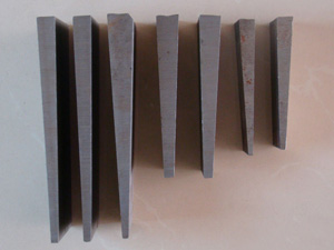 斜墊鐵的規(guī)格以及精度要求:斜墊鐵一般沒(méi)有具體規(guī)格,一般是按設(shè)備重量設(shè)計(jì)圖紙,定做加工。但常用的規(guī)格有100*50;120*60;120*80;150*80;160*80;200*100;200*120;200*150;240*120;300*150;等。斜墊鐵精度一般為△12.5,為一般粗糙精度斜墊鐵,△6.3為中級(jí)精度斜墊鐵,△3.2為高級(jí)精度斜墊鐵,△0.8為精密斜墊鐵(磨床磨削平面而成)。斜墊鐵在使用中安設(shè)備的精密度選擇墊鐵的精度。并非精度高的斜墊鐵就適合所有設(shè)備。應(yīng)該按實(shí)際需要合理選擇斜墊鐵。以達(dá)到使用斜墊鐵的 初節(jié)約成本的目的。